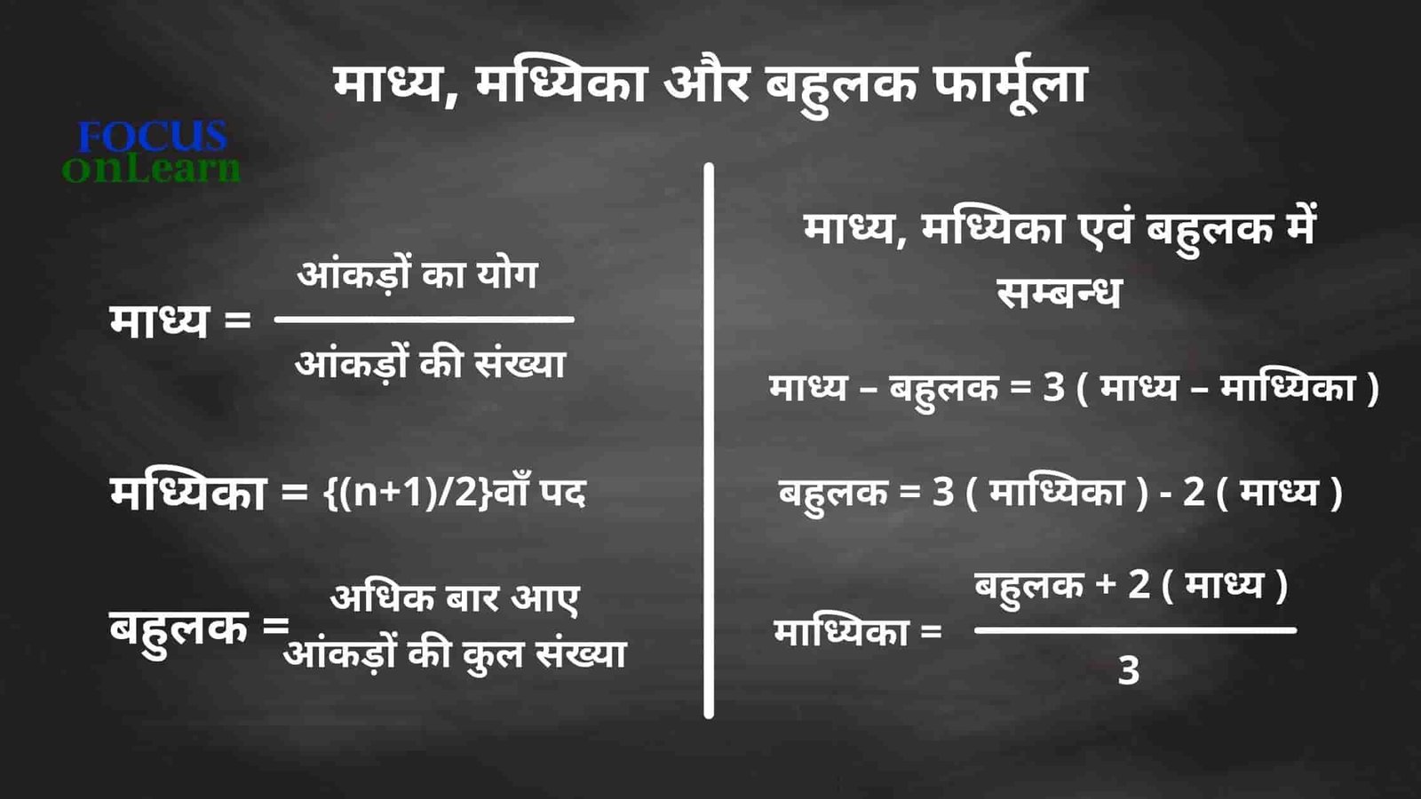 गणितीय महत्वपूर्ण फार्मूला